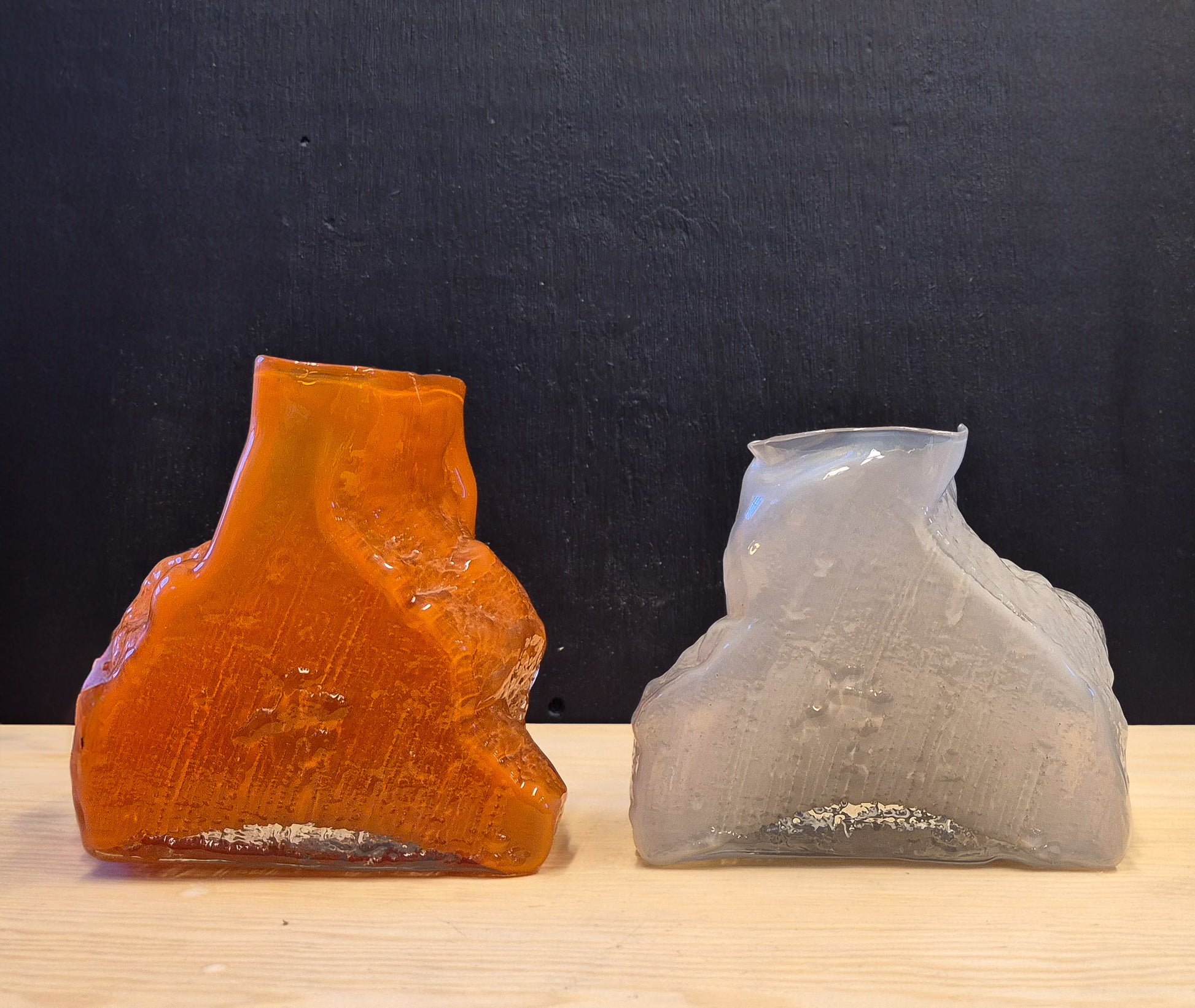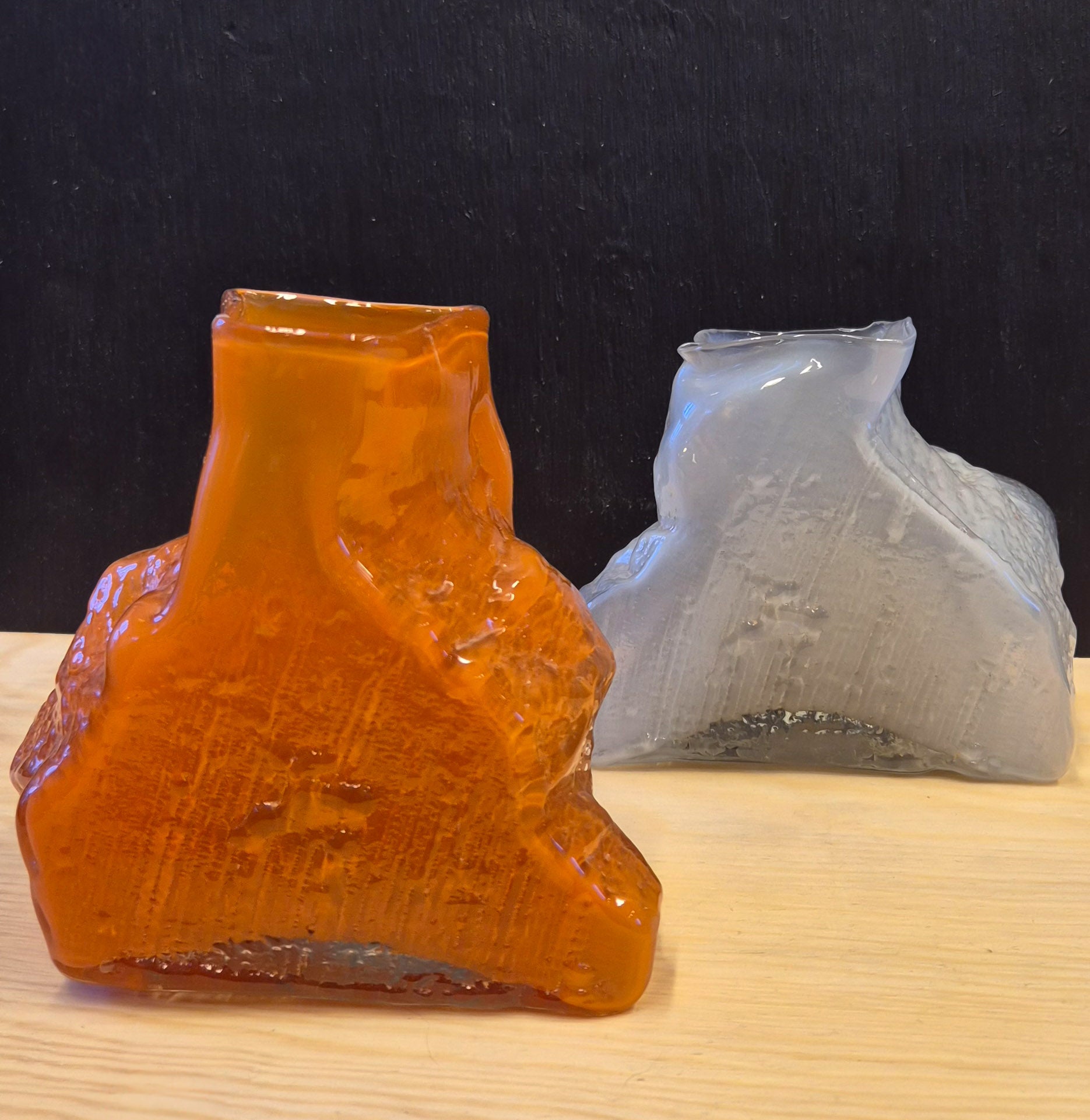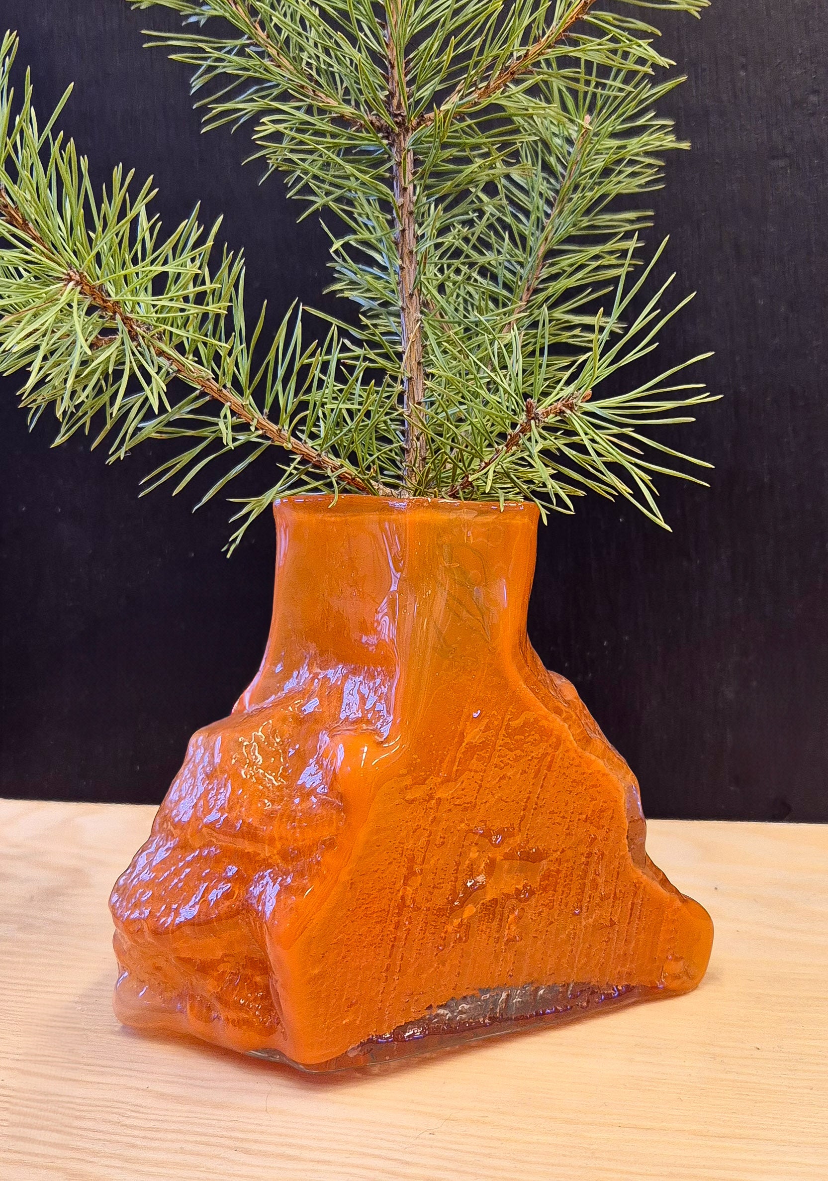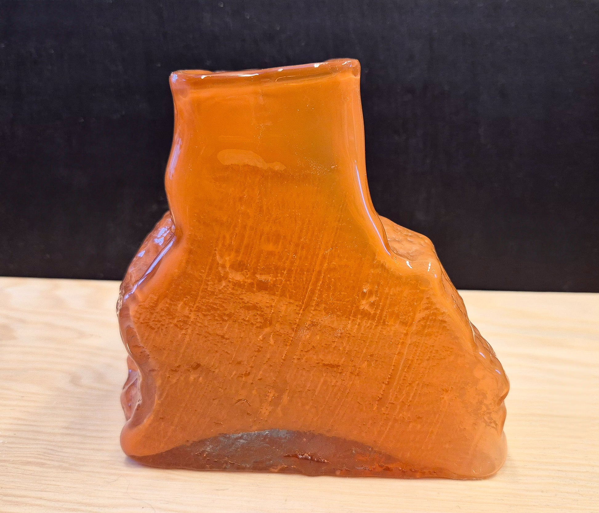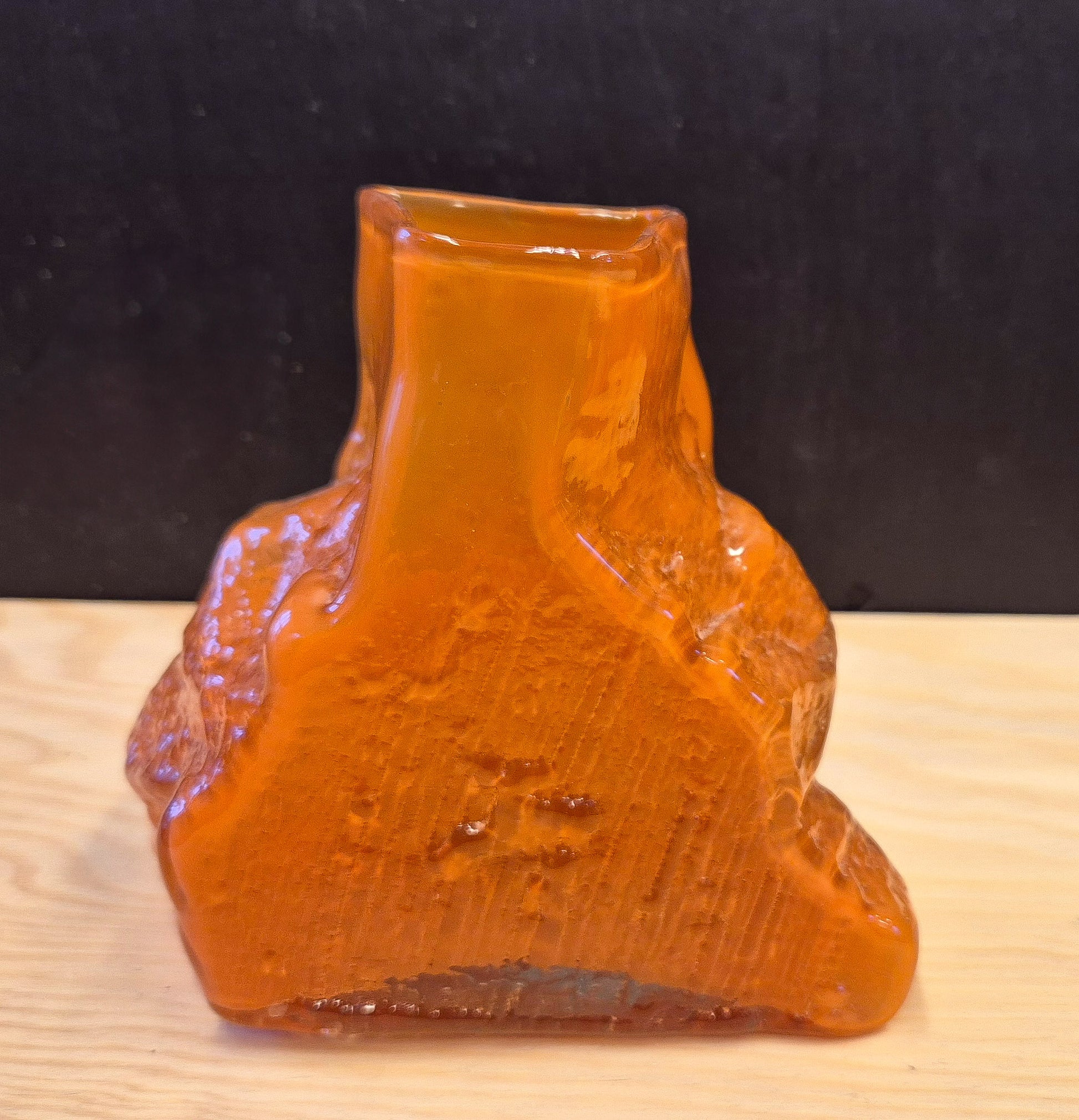 blåst i en form bestående av tegelstenar, därav ytan struktur och vasens namn.